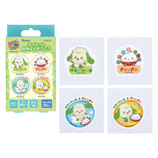 | 商品の特徴 | ユニークなダイカットタイプの絆創膏。4柄×5枚の20枚入り。粘着力があって剥がれにくい。お肌にしっかりフィットする。傷口に付きにくい特殊ネットを使用。旅行や毎日の外出での携帯にもおすすめ。 | ||