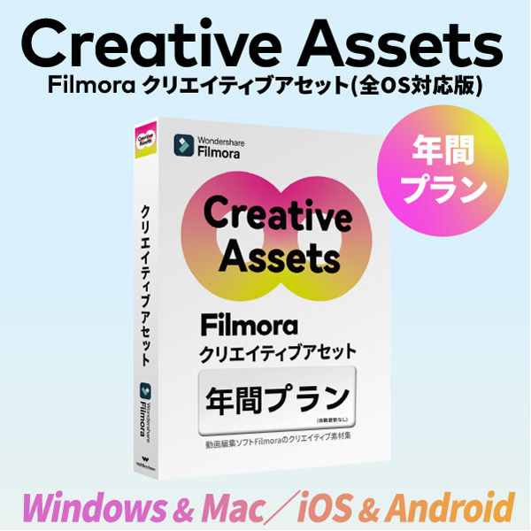 | 商品の特徴 | 豊富な素材集!!無限に広がるAIエフェクト、タイトル、フィルターなど、プロ仕様のアセットが勢揃い ※自動更新なしだから安心 | ||
