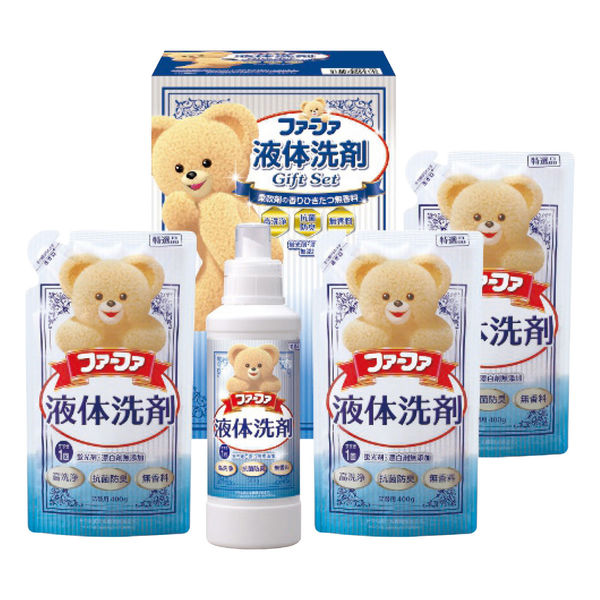 商品の特徴 抗菌・防臭・高洗浄機能をプラスした柔軟剤の香りがひきたつ無香料液体洗剤。すすぎ1回で節水・節電・時短にもなるかわいいファーファの洗剤ギフトです。
