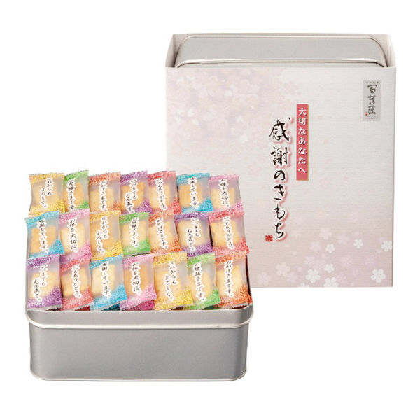| 商品の特徴 | 普段ことばでは言い表せない「感謝のきもち」を、個包装にデザインしました。中身はソフトに焼き上げた上品な味わいは幅広い年代の方に召し上がっていただけます。 | ||