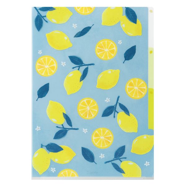 | 商品の特徴 | 右端が大きく開き、書類の出し入れがスムーズな3ポケット仕様のクリアホルダー。3つのポケットの重なりで完成する絵柄は、男女問わず使いやすいデザインです。各ポケットにはインデックスがあり、分類しやすい機能的な仕様。A4は書類の分類に最適で、仕事に、家庭に、勉強に、汎用性が高い定番サイズです。爽やかなブルーの背景に手書き風のレモンが散りばめられた、かわいらしいデザインです。 | ||