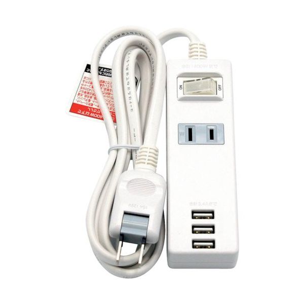 | 商品の特徴 | ●USB充電機能付便利タップで、合計出力3.4A、スマホやタブレットを急速充電します。●トラッキング火災予防絶縁キャップ付のムービープラグを採用しています。●集中スイッチ付でこまめに入/切が出来て節電に役立ちます。●断線や被服破れに強い二重被ふくコードです。 | ||