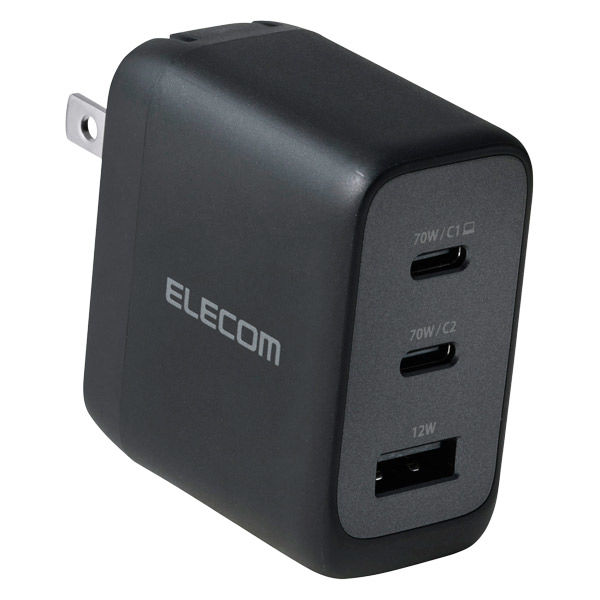 | 定格出力電力(2ポート同時接続時(1)) | [USB Type-C1+USB Type-C2ポート](1)合計最大出力70W(USB Type-C1ポート最大出力45W・PPS最大出力45W、USB Type-C2ポート最大出力25W・PPS最大出力25W) | 外形寸法 | 幅約50.3mm×奥行約29.7mm×高さ約56.2mm |