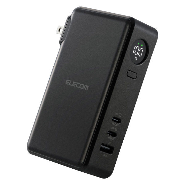 コンセント一体型 モバイルバッテリー 10000mAh 3ポート 残量表示 黒 DE-AC13-10000BK エレコム 1個(直送品)