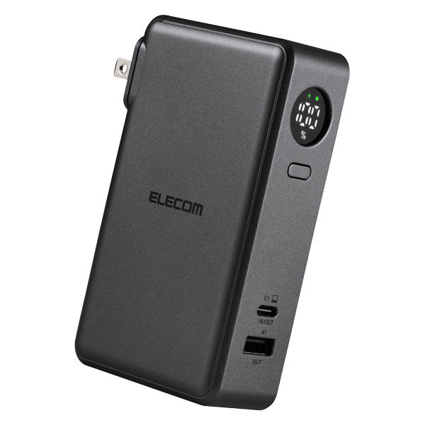 コンセント一体型 モバイルバッテリー 10000mAh 2ポート 残量表示 ミッドナイト EC-C46LMN エレコム 1個(直送品)