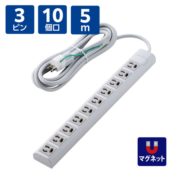 延長コード 電源タップ 3ピン 10個口 5m マグネット 抜け止め 2ピン変換アダプター付 T-H31050NM エレコム 1個(直送品)