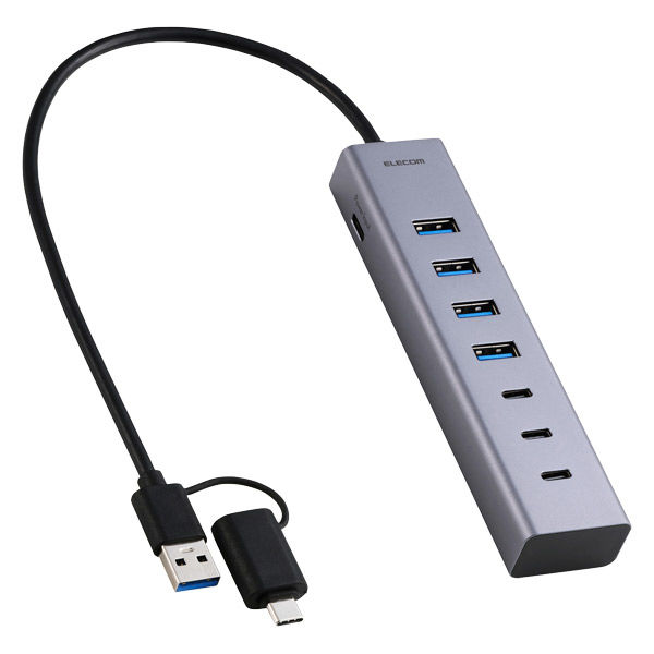 USBハブ USB-A×4 USB-C×3 USB 5Gbps セルフパワー・バスパワー U3HC-T070SV エレコム 1個(直送品)