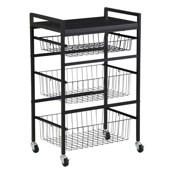 | 商品の特徴 | キッチン周りの小物をまとめて収納できるキッチンワゴン。家電や調理器具、調味料・ストック食材を整理整頓し、憧れのスマートキッチンへ。3段のスライド式バスケットとキャスター付きで、見た目以上の収納力。シンプルなデザインで使い方も幅広く、ランドリーワゴンとしても活躍します。 | ||