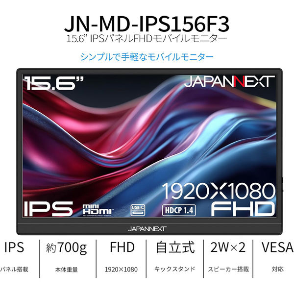JAPANNEXT 15.6インチ ワイド モバイルディスプレイ JN-MD-IPS156F3 1台(直送品)