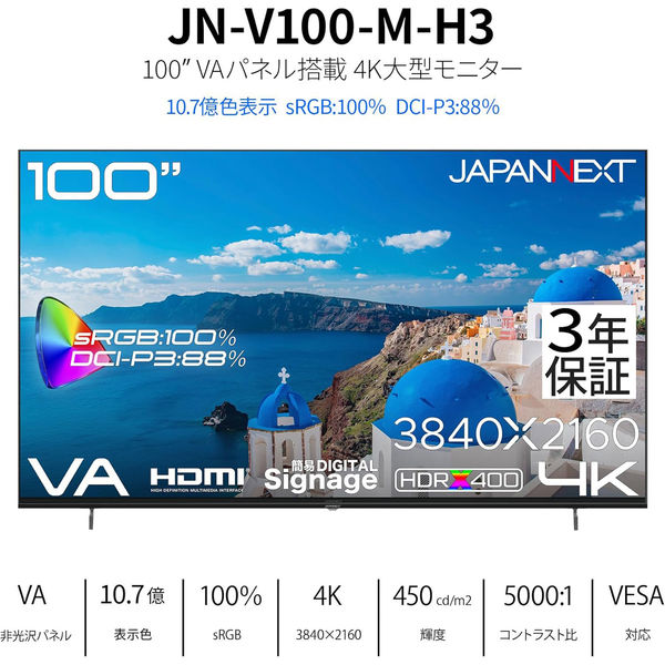 JAPANNEXT 100インチ ワイド4K液晶ディスプレイ 車上渡し製品 3年保証 JN-V100U-M-H3 1台(直送品)