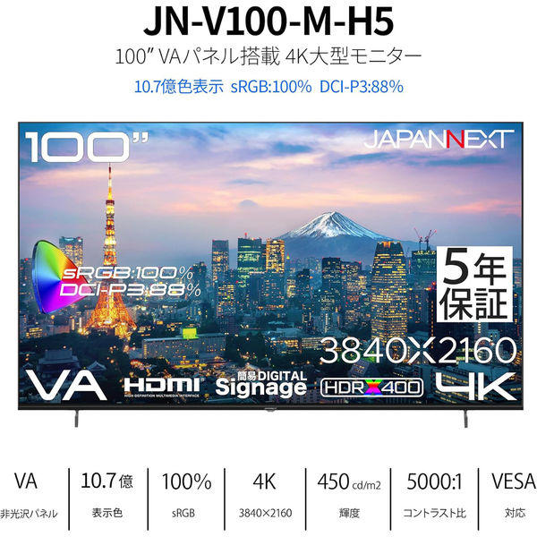 JAPANNEXT 100インチ ワイド4K液晶ディスプレイ 車上渡し製品 5年保証 JN-V100U-M-H5 1台(直送品)