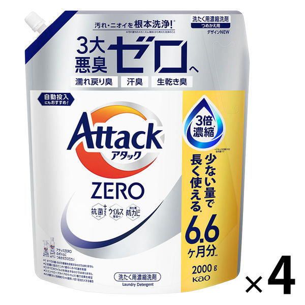 アタックゼロ(Attack ZERO) 詰め替え メガジャンボ 2000g 1箱(4個入) 衣料用洗剤 花王 (旧品)