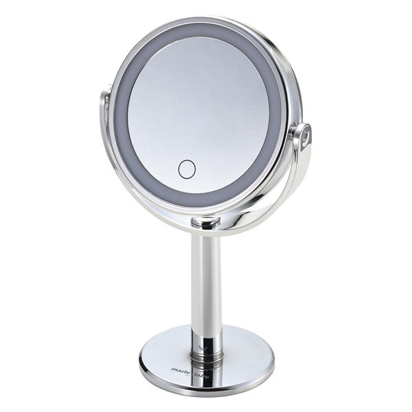 | 商品の特徴 | タッチセンサーでパッと点灯します。LEDライト付のスタンドタイプの両面ミラーです。LEDが埋め込まれており、明るく照らしてメイクができます。表は等倍、裏面は拡大鏡(3倍)になっています。凹凸が少なくお手入れ簡単です。 内蔵されたライトはワンタッチでON/OFF切替です。鏡の角度が自由に変更できます。 | ||