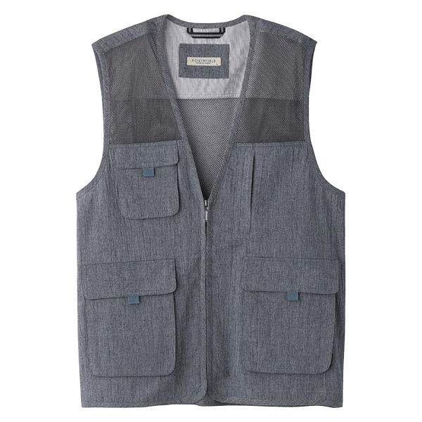 | 商品の特徴 | 背面に通気性の良いメッシュを使用した多機能ポケット付きのベストです。脇部分に消臭テープを使用しております。 | ||