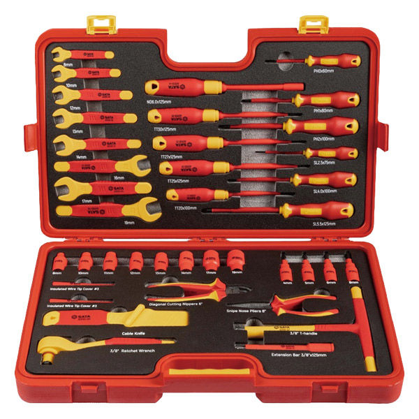 - 10mmクイックリリースラチェットレンチ 200mm 10mmステアリングロッド 125mm 10mmTハンドル 200mm 10mm6角スリーブ (8,10,11,12,13,14,17,19mm) 10mmドライバーソケット (4,5,8mm) 10mm6角ドライバーソケット 6mm オープンエンドレンチ (8.10.12mm) スパナ (13,19mm) オープンエンドレンチ (14,16,17mm) VDE 2色ハンドル絶縁ナットドライバー 6mm VDE 2色ハンドル絶縁フラワードライバー(TT20,25,27,30) Tシリーズ 2色ハンドル絶縁プラスドライバー (#0x60mm,#1×80mm,#2×100mm) Tシリーズ 2色柄マイナス絶縁ドライバー(2.5×75mm,4.0×100mm,5.5×125mm) VDE 絶縁耐圧ラジオペンチ 6" VDE 絶縁斜めノーズプライヤー 6" 円錐形絶縁プラスチックスライドスリーブ 3#×2個 VDE ストレート刃 VDE ケーブルストリッパー 1pc