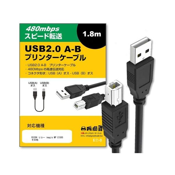- ●USB2.0対応のUSBケーブル(AtoBタイプ)特徴●【幅広い互換性】●USB(Aタイプ)端子を持つパソコンとUSB2.0(Bタイプ)端子を持つプリンター、スキャナ、複合機、外付けハードディスクドライブ、デジカメなどの周辺機器の接続に使用できます。●USB1.1(12Mbps)およびUSB1.0(1.5Mbps)と下位互換性があります。すべてのUSBBデバイスと互換性があり、標準のType-Aオスコネクタをコンピュータに接続し、Type-Bコネクタを他のデバイスに接続するだけで、初心者でも簡単に使いこなせるようになっています。●【高速データ転送】●USB2.0規格に対応し、最大480Mbpsのスピードでデータ転送が可能です。●サビや信号劣化の心配がない金メッキピンを使用しています。●プリンター等の無線接続(Wi-Fi)が繋がらない時や不安定な場合は、有線(USBケーブル)を接続することで安定した通信が可能です。●対応機種:RICOHリコー デジタル印刷機など ※すべてのメーカーと対応機種を記載できておりません。●ケーブルタイプ:USB2.0対応USBケーブル(A-Bタイプ)●長さ:1.8m●コネクタ形状:USB(A)オス-USB(B)オス●カラー:ブラック