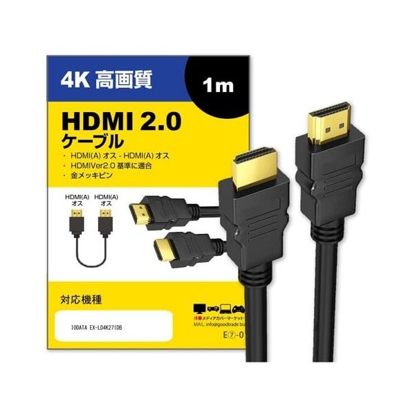 - ●HDMIA-HDMIA2.0規格ケーブル特徴●対応デバイスは、AppleTV4K,ブルーレイプレーヤー,FireTV,RokuUltra,PS5,PS4,PS4Pro,PS3,XboxOne/360,WiiU,NintendoSwitch,テレビやモニターとパソコン、レコーダー・プレイヤー、AVアンプ、ゲーム機など。あらゆるデバイス間を接続する時におすすめするHDMI-HDMIケーブルです。●このHDMIケーブルはHDMIVer2.0基準に適合。サビなどに強く信号劣化を抑える金メッキプラグを採用して伝導のロスを減らします。●PVCカバー多重加工とシールドが外部との干渉を防ぎ、デジタル信号の密度と純度を保持します。●HDMIケーブルは共有されたインターネット接続にも対応しています。別のイーサネットケーブルを用意する必要はありません。複数のデバイス間でインターネット接続が可能です。●4K@50/60(3840×2160p)に対応しています。(「フルスペックハイビジョン」画質である1080p/60の4倍の解像度)。音声は最大1536KHzのサンプリング周波数(CDは44.1KHz)最高で32chまでのオーディオ転送にも対応。●対応機種:【IODATA/アイ・オー・データ】●液晶ディスプレイ●HDMIタイプA規格が搭載された機器に対応しております。※すべての対応機種を記載できていない場合がございます。●ケーブルタイプ:HDMI2.0対応HDMIA-HDMIAケーブル●長さ:1m●コネクタ形状:HDMI(A)オス-HDMI(A)オス●カラー:ブラック