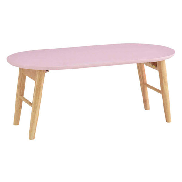タマリビング スモーキー 折り畳みテーブル 楕円 幅800×奥行400×高さ330mm ピンク 1台(直送品)