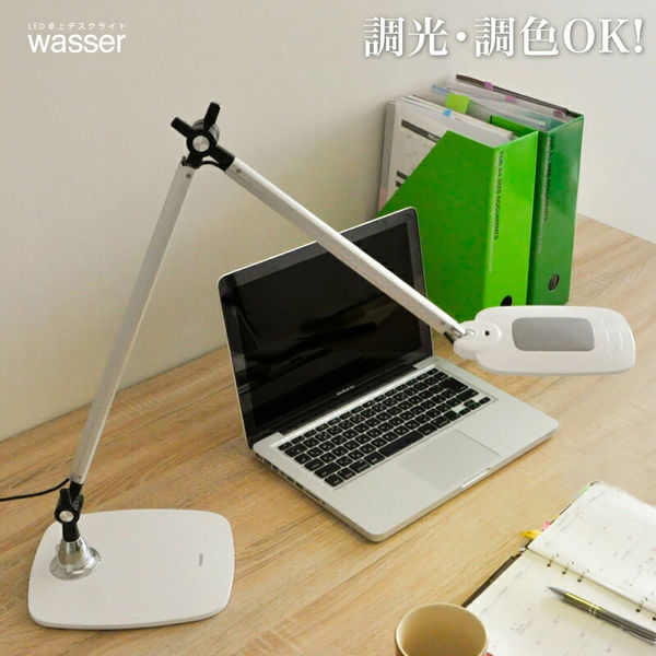 大河商事 LED デスクライト調色3色 センサー式 薄型ライト ホワイト wasser16 1台(直送品)
