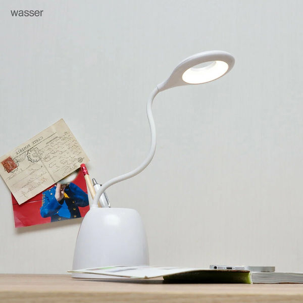 | 商品の特徴 | コンパクトなボディに、ペン立てを備えた多機能LEDデスクライト「wasser32」です。リング状セードが影を抑え、目に優しい柔らかな光で学習や読書を快適にサポート。無段階調光とフレキシブルアームで、好みの明るさと角度に自由に調整できます。USB充電式でコードレス使用が可能なため、子供部屋・書斎・寝室など場所を選ばず活躍します。 | ||