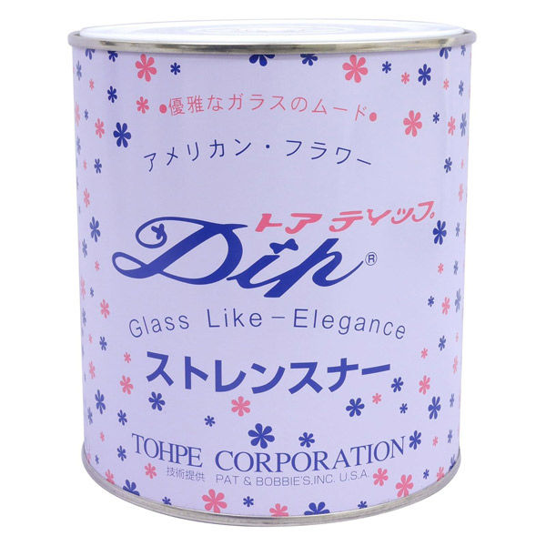 - アメリカンフラワー・ディップアートディップアートで使用する強化液です。 ディップ液で作った膜を強く丈夫にさせます。 ディップ液が乾いた後に、この液に浸したり塗ったりします。 アメリカンフラワーとは、ワイヤーで作った花びらや葉などをディップ液に浸して膜を張り、形成するアートです。 透明感あふれる素敵な作品に仕上がり、変色・劣化も少ないので長い期間楽しめるのが特徴です。 インテリア・ブライダルブーケ・ファッション・アクセサリー・ギフトなどに最適です。 花だけでなく、人形・鳥・昆虫・帆船・お城など、様々な作品が作れます。