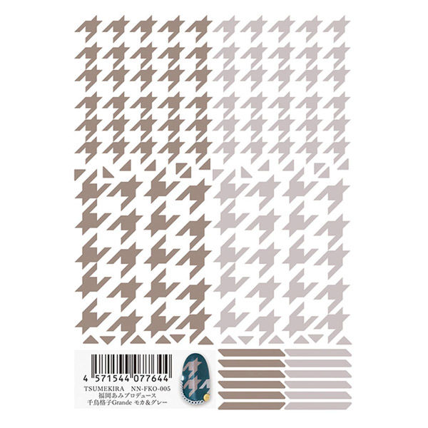 | 商品の特徴 | 大きめ2サイズの千鳥格子柄で、指先にしっかりと存在感をプラス。福岡あみセレクトのモカ&グレー、キャメル&ブルーの2種類のカラーで、シックにもカジュアルにも楽しめます。 | ||