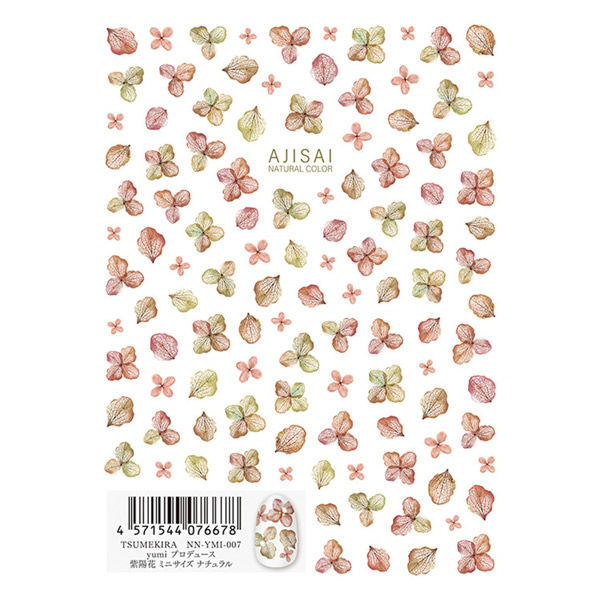 | 商品の特徴 | 人気の紫陽花シールに、サイズを厳選した使いやすいミニサイズが加わりました。手描きでは難しい、葉脈まで再現された繊細で透明感のある花びら。大人可愛いカラーで本物の花びらを埋め込んだような、紫陽花ネイルを楽しんでいただけます。 | ||