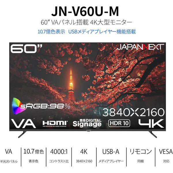 | パネルタイプ | VAパネル | その他商品仕様 | JN-V60U-M |