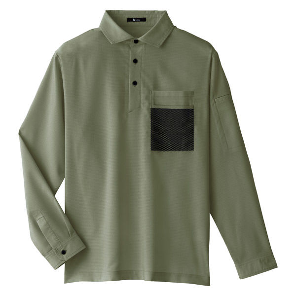 Asahicho(旭蝶繊維) 0029 長袖ファブリックシャツ カーキ Sサイズ 1枚(直送品)