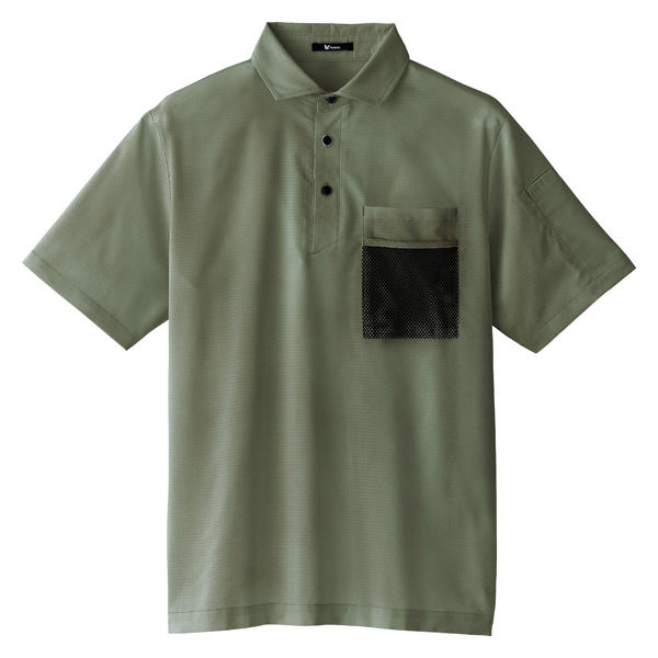 Asahicho(旭蝶繊維) 0028 半袖ファブリックシャツ カーキ Sサイズ 1枚(直送品)