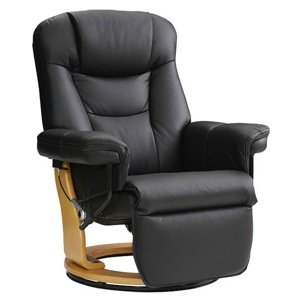 | 商品の特徴 | 本革仕様のリクライニングチェア。チェア本体は360度回転し、背もたれからオットマンまで肉厚クッションを備えた贅沢なつくりです。足を乗せて自由な角度でリクライニングを固定でき、背もたれ・足部は別々に固定可能。省スペース対応のオットマン一体型で、台湾系工場で製造した品質に自信のあるパーソナルチェアです。 | ||