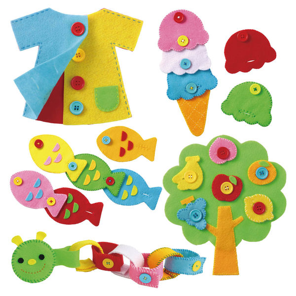 | 商品特長 | フェルトを使って、巧緻性を育てるおもちゃが作れるクラフトキットです。柔らかく扱いやすいフェルト素材に、ボタン留めやひも通し、つなぎ遊びなどの仕掛けを組み合わせることで、指先をしっかり使う遊びを取り入れることができます。やわらかいフェルト素材を使用し、切る・貼る・縫うといった工程を通して基礎的な裁縫技能を学べます。遊びながら創造力や手先の器用さを育てられる内容で、家庭用はもちろんイベントやワークショップにもおすすめです。製作時間の目安は約4~6時間。気軽にハンドメイドを楽しみながら、保育教材としても活用できる実用的なキットです。【準備するもの】はさみ(布用・紙用)、ボンド(手芸用)、チャコペンシルまたはえんぴつ、まち針 | ||