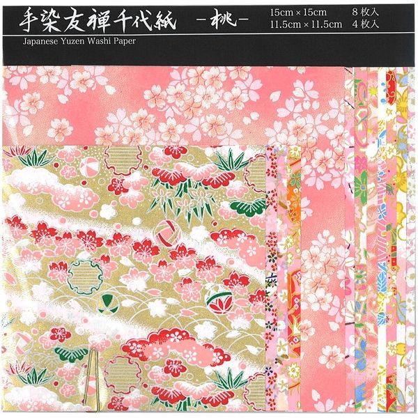 ワールドクラフト 手染友禅千代紙 桃 12柄12枚入 YZ-C-005 1セット(2冊)(直送品)
