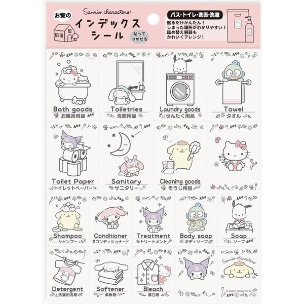 | 商品の特徴 | 様々な収納シーンに使える、サンリオキャラクターを使ったかわいいインデックスシール。目的別に使えます。生活用品、日用品の分類もかわいく機能的に。水濡れに強いユポ素材を使用し、色落ちしにくいよう、耐光インク使った機能的にも優れたシールです。 | ||
