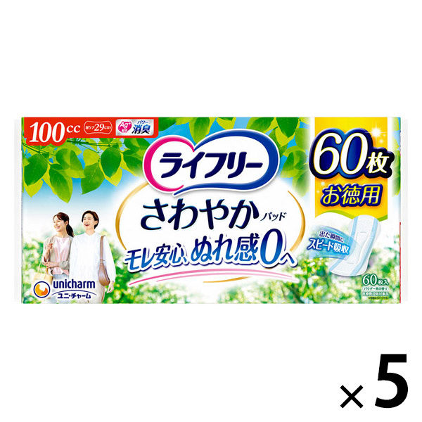 軽失禁 尿漏れ ライフリーさわやかパッド 100cc60枚 1セット(1個×5) ユニ・チャーム