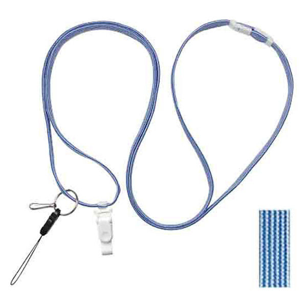 | その他仕様 | 安全調整パーツ付き、バンドクリップ、脱着式マツバ、長さ調節可能(100~150cm) | 材質 | 紐:PET、紐付属パーツ:PP、紐止めパーツ:PC、クリップレバー・脱着マツバ:POM、クリップバンド:Pe |