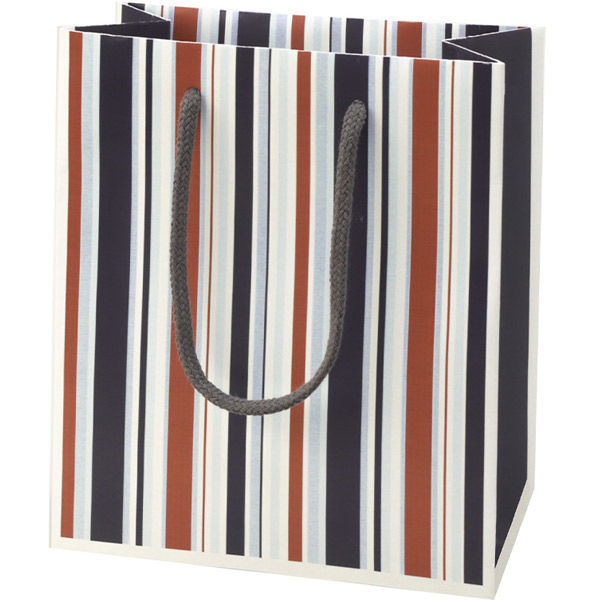 | 商品の特徴 | 使い勝手の良い落ち着いた色味のストライプ柄の手提げ紙袋です。男女問わずご使用いただけます。腕時計や香水、アクセサリー等の小さめのプレゼントを入れるのに適したサイズです。 | ||
