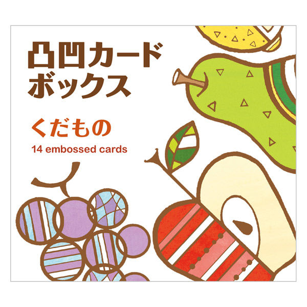 | 商品の特徴 | イラストが凸凹になっているカードのセットです。カードの上に紙をのせて色鉛筆でこすると、絵が浮き出てきます。カードに直接色を塗ることも可能です。14種類のくだもののイラストがエンボス加工されています。裏面にはくだものの名前が印刷されています。 | ||