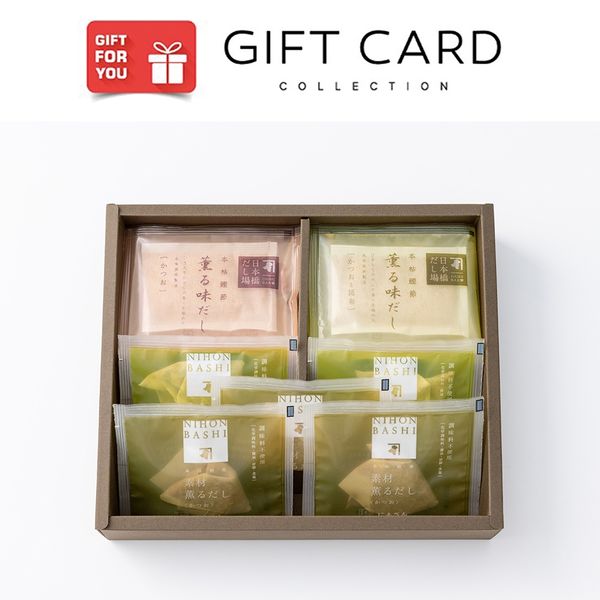 | 商品の特徴 | ギフトカードで交換できる商品:薫る味だしかつお8g・薫る味だしかつお昆布8g×各5、素材薫るだしかつお10g×3、素材薫るだしかつお昆布10g×2 賞味期限:180日 | ||
