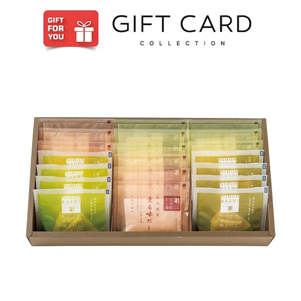 | 商品の特徴 | ギフトカードで交換できる商品:薫る味だし(かつお,かつお昆布 各8g×6袋) 素材薫るだし(かつお,かつお昆布 各10g×4袋)賞味期限:180日 | ||