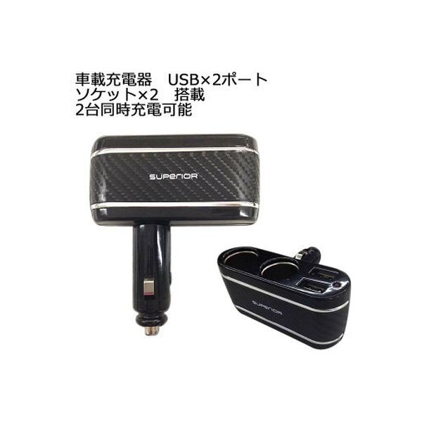 | 商品の特徴 | ●シガーライターソケットに直接差し込むタイプの車載充電器です。●USBポート×2個口とシガーライターソケット×2個口で、お手持ちのケーブルを利用してスマートフォン2台の同時充電が可能。 | ||