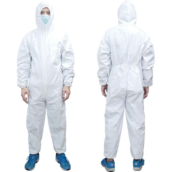 軽くて丈夫なポリプロピレン不織布にポリエチレンフィルムを張り合わせた、防水、防油、防塵の不織布つなぎ防護服です。