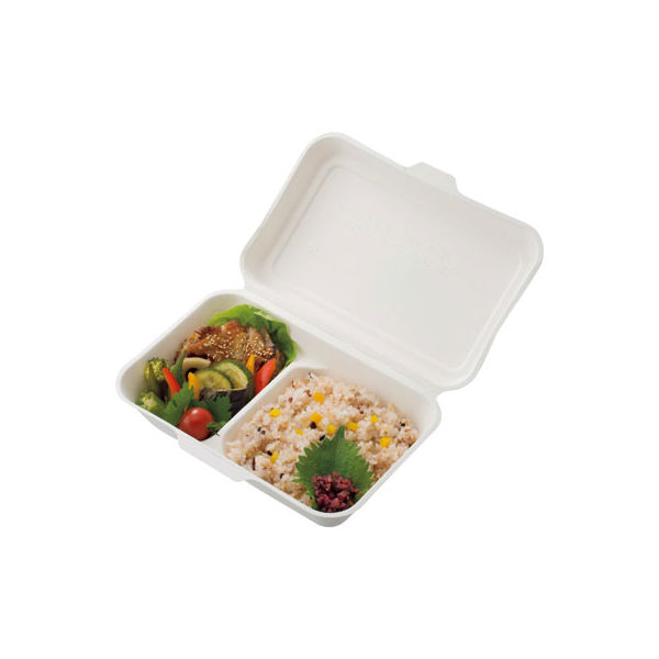| 商品の特徴 | サトウキビの搾りかす(バガス)が原料なので、環境に配慮しています。内側コーティングでご飯がくっつきにくい。耐水耐油加工済、電子レンジ使用可能で丈夫な素材。使いきりタイプ。 | ||