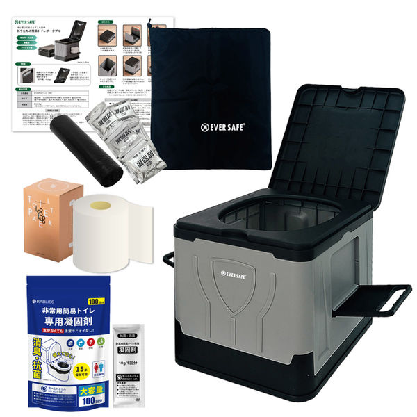 | 材質 | 【トイレ本体】ポリプロピレン(PP)【備蓄用トイレットペーパー】再生紙100% | セット内容品 | 汚物袋×12、凝固剤×12、日本語説明書×1、専用収納袋×1、凝固剤100回分、備蓄用トイレットペーパー×1 |