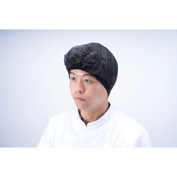 不織布素材のヘアキャップ。カラーバリエーション「黒」を取り揃え。毛髪落下防止に最適。未使用時はコンパクト。