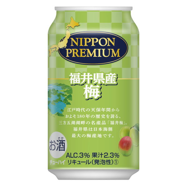 | 商品の特徴 | 日本の美味しい果実や素材を多くの人にお届けする「ニッポンプレミアム」シリーズ。福井県で育った肉厚の梅の実から取った果汁を使用したチューハイです。梅の自然な香りと酸味をぎゅっと閉じ込め、すっきりとした甘酸っぱい味わいに仕上げました。また、人工甘味料不使用で、自然な甘みにこだわりました。 | ||