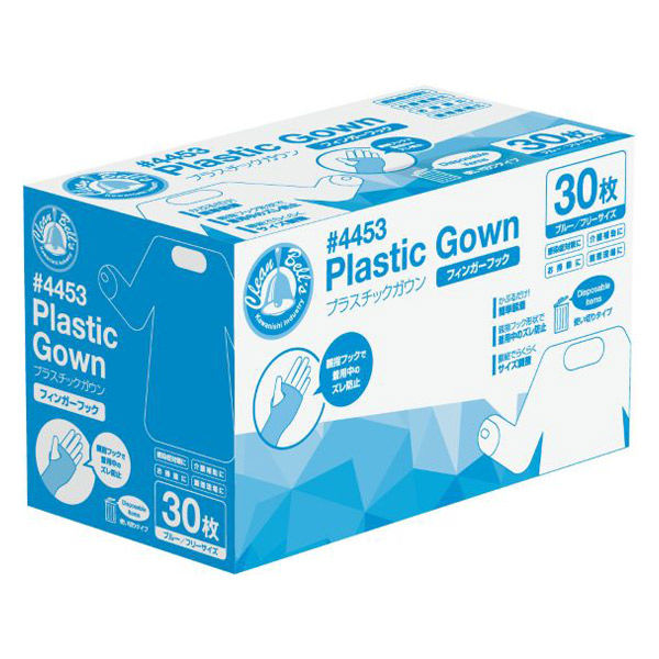 川西工業 プラスチックガウン フィンガーフック30枚ブルー 4453 1箱(30枚入)