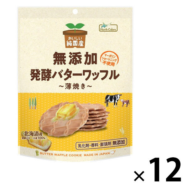 | 商品の特徴 | 北海道産の発酵バターを全重量の21%も使用した風味豊かなワッフルクッキーです。 ノースカラーズのおいしい純国産シリーズは、調味料(アミノ酸) 保存料 着色料 香料を一切使いません。 原材料の全てが国産の贅沢なシリーズです。 | ||