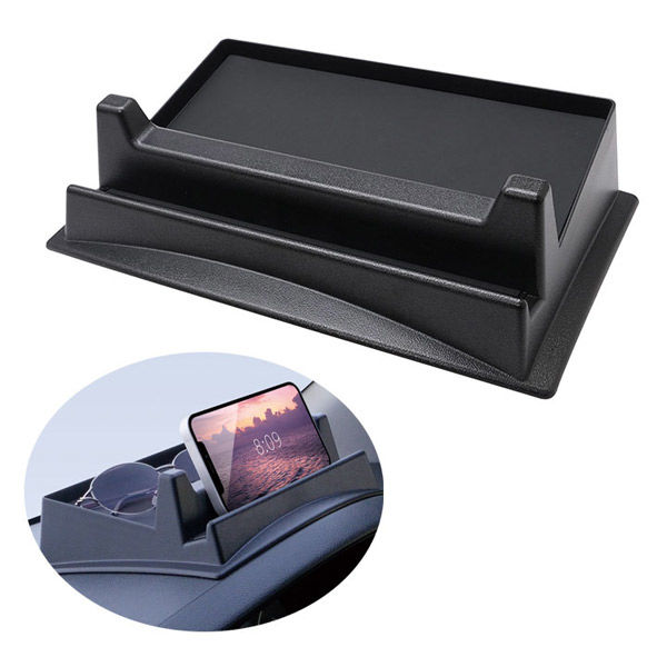 | 商品の特徴 | ●専用設計で、メーター上部のダッシュボードにピッタリフィットします。 ●小物を置くのに便利なトレイです。 ●両面テープで貼り付けるだけの簡単装着です。 ●スマホスタンド部とトレイ部には取りはずして水洗いできるすべらないシートが付属しています。 ●駐車時には、スマホスタンド部に厚み14mmまでのスマートフォンが立てかけられます。(横置きのみ) ●トレイ部は最大幅207mm×最大奥行88mmまでの小物を置くことができます。 | ||