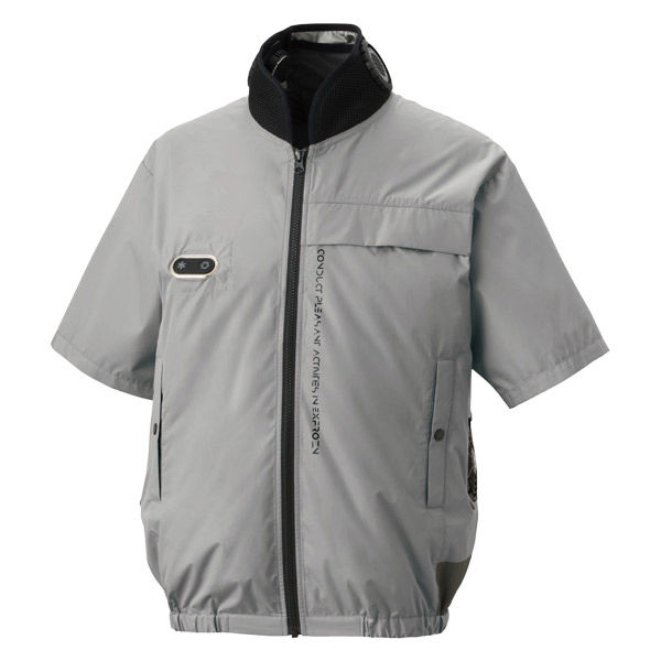 - 素材:ポリエステル100%(裏チタン加工)、ファスナー:プラスチック、ボタン:ファン取り付け口・胸ポケット/プラスチック 両脇ポケット/金属、アイレット:金属